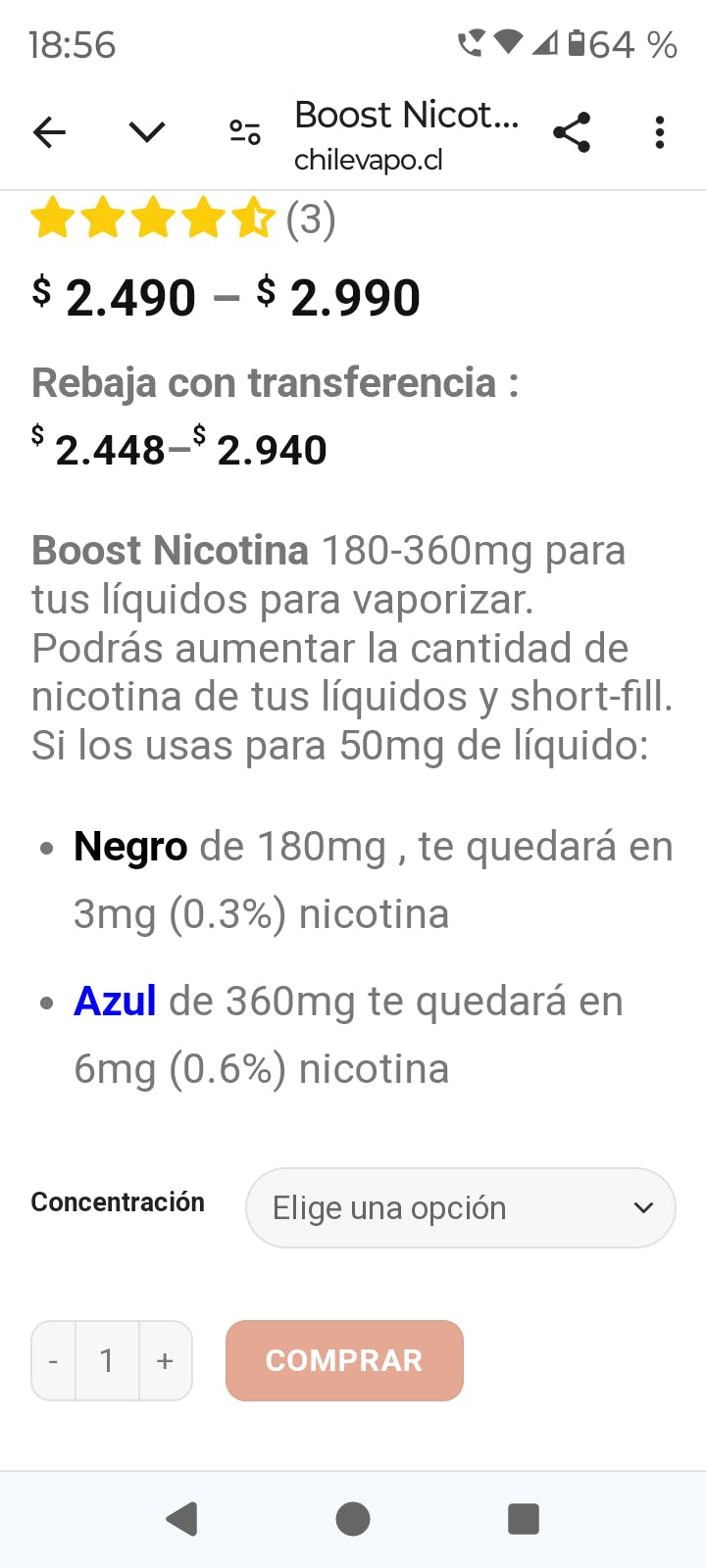 - 1 líquido de 10ml con 180 o 360mg de nicotina.