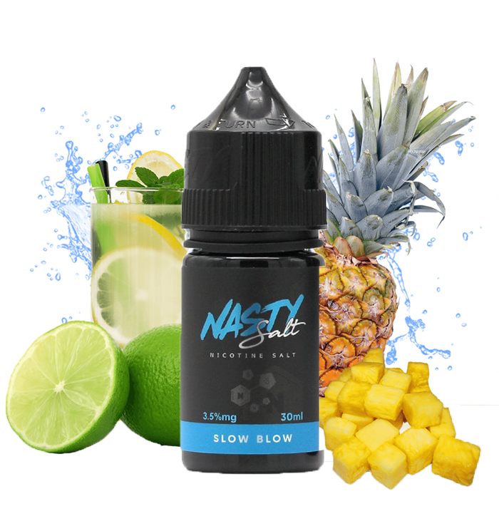 Los líquidos Nasty Juice son bien conocidos y populares a estas alturas. En esta presentación de la Sal de Nicotina SALT Nasty Juice Slow Blow Piña Lima trae un mix con notas de Piña dulce y Lima.